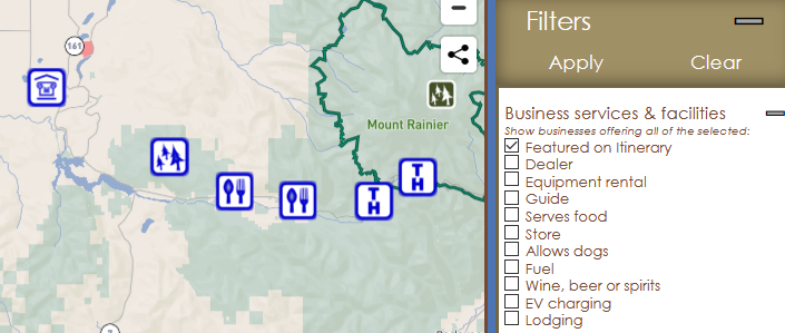 Use the “Featured on Itinerary” filter to highlight places on the itinerary.