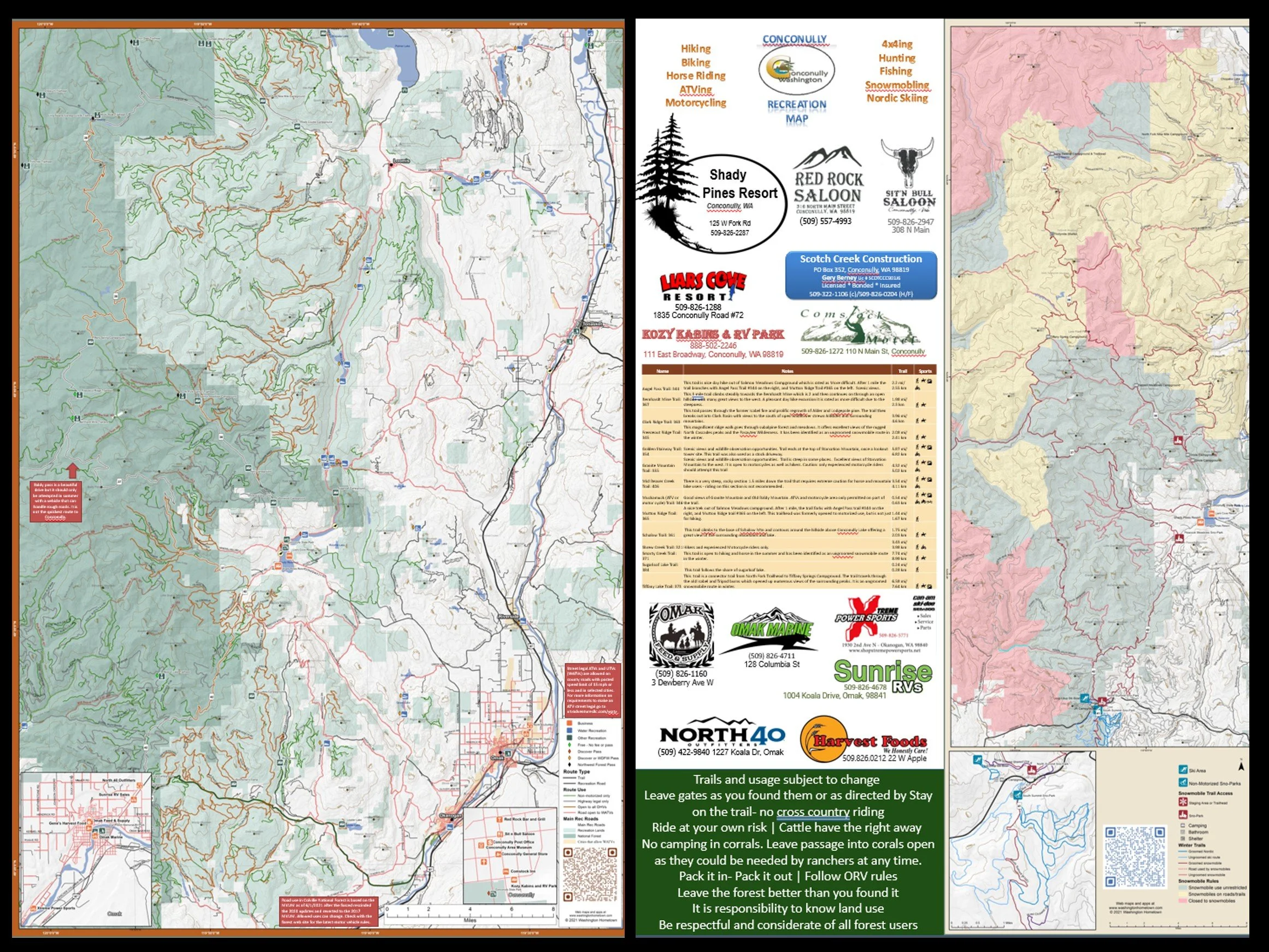 Conconully Summer & Winter Recreation: Two sided map. Client sold advertising and sold print map.